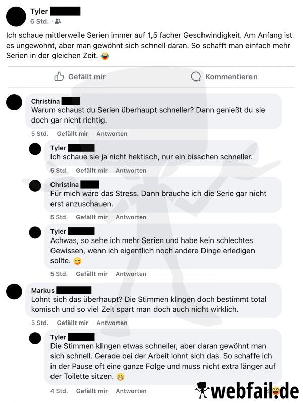 Manche versuchen sogar beim Serien schauen noch ein bisschen Zeit rauszuholen.