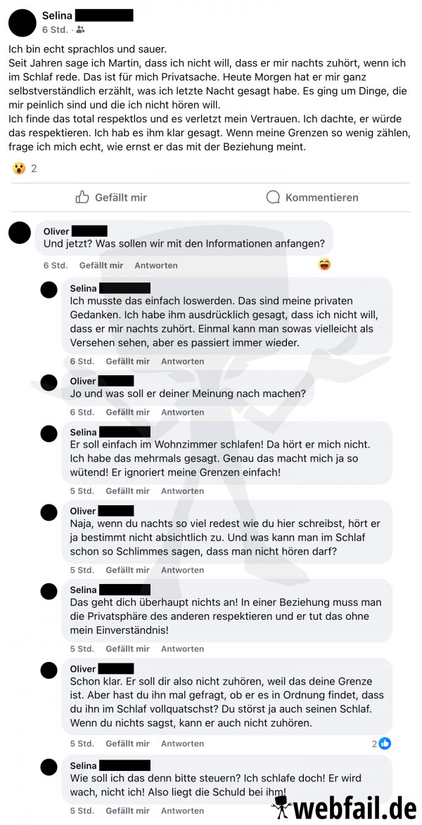Manche Konflikte entstehen, weil jemand zu viel redet, selbst im Schlaf.