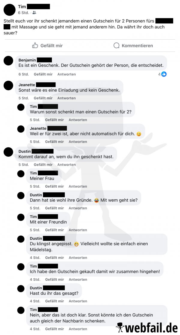 Bei Gutscheinen für zwei ist offenbar nicht immer klar, wer die zweite Person ist.